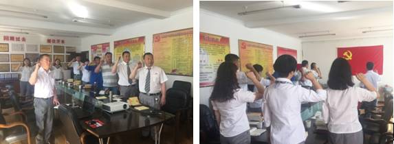 2016年6月30日,青海物產(chǎn)汽貿(mào)公司黨支部組織全體黨員慶"七一"上黨課。黨課開始之前,全體黨員面向黨旗重溫了《入黨誓詞》。"我志愿加入中國共產(chǎn)黨,擁護(hù)黨的綱領(lǐng),遵守黨的章程,履行黨員義務(wù),執(zhí)行黨的決定,嚴(yán)守黨的紀(jì)律,保守黨的秘密,對黨忠誠,積極工作,為共產(chǎn)主義奮斗終身,隨時(shí)準(zhǔn)備為黨和人民犧牲一切!永不叛黨"。