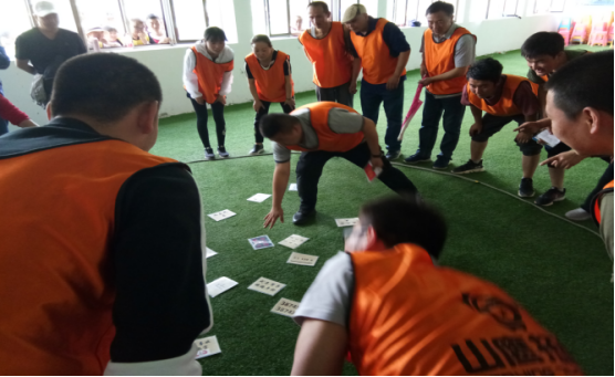 通過系列游戲?qū)胪卣估砟?,同時建立團隊、選舉隊長、編隊歌、取隊名、定隊訓(xùn)、繪隊旗、做團隊雕塑,做文化展示。隊員在精神整裝和團隊建立時充滿信心和激情的表現(xiàn),體現(xiàn)出青海物產(chǎn)汽貿(mào)團隊已整裝待發(fā)、破冰起航。