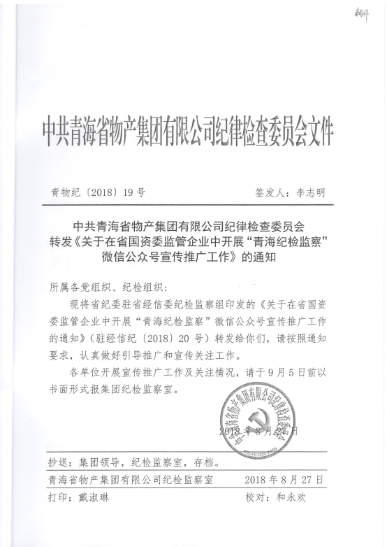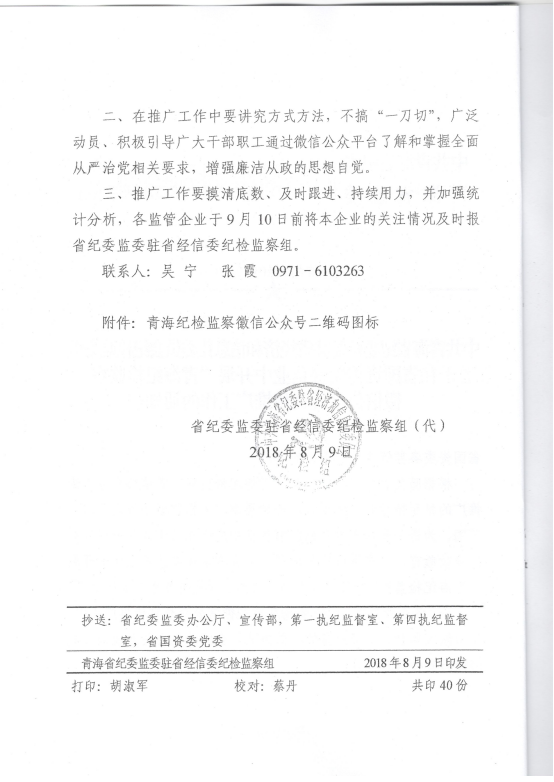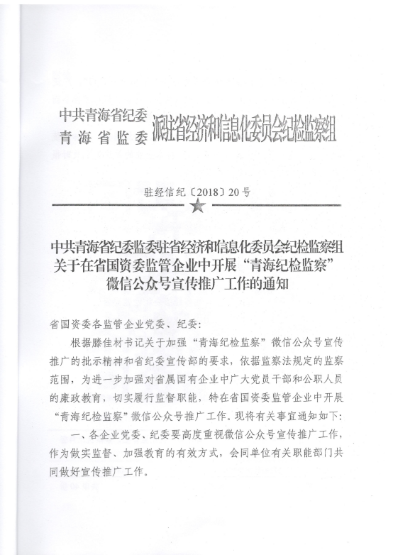轉(zhuǎn)發(fā)《關(guān)于在省國資委監(jiān)管企業(yè)中開展“青海紀(jì)檢監(jiān)察”微信公眾號(hào)宣傳推廣工作》的通知