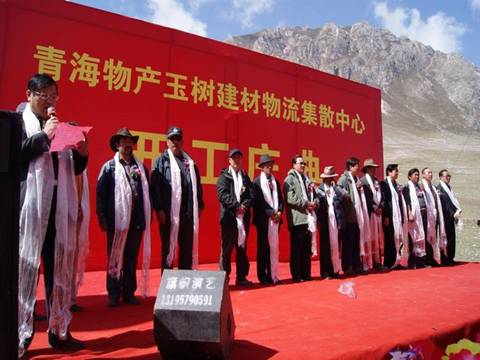 省玉樹地震災(zāi)后重建現(xiàn)場(chǎng)指揮部指揮長(zhǎng)、副省長(zhǎng)馬順清宣布建材物流集散中心正式開工并講話。省政府副秘書長(zhǎng)巨偉、省經(jīng)委、省城鄉(xiāng)住房建設(shè)廳、西寧市政府、玉樹州政府相關(guān)部門、玉樹縣有關(guān)負(fù)責(zé)同志,省物產(chǎn)集團(tuán)總經(jīng)理王玉輝、黨委書記白家林、副總經(jīng)理物產(chǎn)化工公司董事長(zhǎng)耿保平等參加了開工儀式。