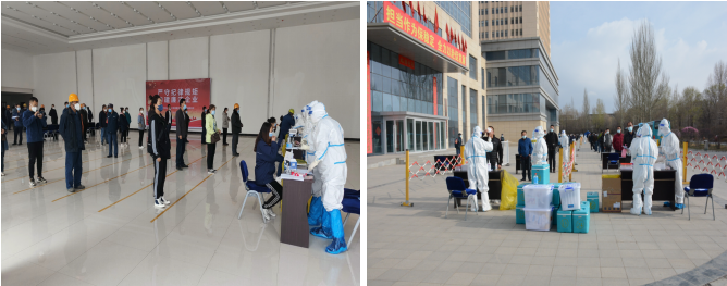 在疫情防控緊要時期,主動配合落實(shí)核酸檢測等防控措施。多頻次聯(lián)系大通縣疫情防控指揮部及北川園區(qū)管委會,于4月14日、4月17日開展兩輪核酸檢測行動。為做好本次核酸檢測工作,公司黨政領(lǐng)導(dǎo)班子高度重視,科學(xué)謀劃,與相關(guān)單位溝通銜接后,連夜加班在園區(qū)空曠區(qū)域設(shè)置檢測點(diǎn),方便核酸檢測工作;同時根據(jù)公司生產(chǎn)經(jīng)營實(shí)際,公司財務(wù)審計部、實(shí)業(yè)開發(fā)部人員、供銷部負(fù)責(zé)同志協(xié)同公司所屬各單位,密排人員在崗、離崗、休班情況,提前編制完成人員信息統(tǒng)計及分組排序表;歷經(jīng)全員密切配合,兩次共采集核酸檢測樣本2093個,保證了篩查應(yīng)檢盡檢、無一遺漏,及時排除風(fēng)險。