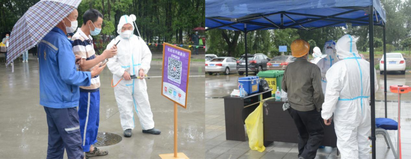 清晨,在綿綿細雨中園區(qū)新一輪區(qū)域核酸檢測有序推進,核酸檢測點搭起遮雨帳篷,公司廣大黨員干部奮勇?lián)?dāng)沖鋒在前,維護秩序、進行掃碼,醫(yī)護人員快速有效地采集核酸。大家上下同心、通力配合,有序高效的進行核酸檢測,僅用了三個多小時就全面完成了園區(qū)人員核酸采樣工作。據(jù)統(tǒng)計,本次核酸檢測共有1103名干部職工及外租單位人員參加,檢測結(jié)果全部為陰性。