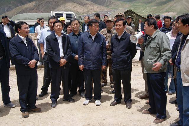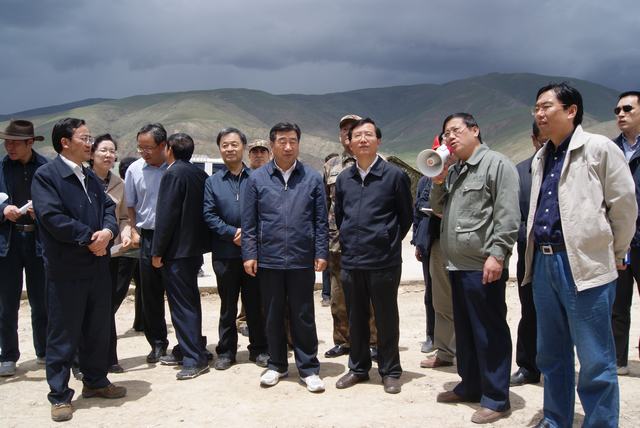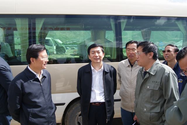 6月19日,中共中央政治局委員、國(guó)務(wù)院副總理、國(guó)務(wù)院抗震救災(zāi)總指揮部總指揮回良玉率領(lǐng)相關(guān)部委領(lǐng)導(dǎo),在青海省委書(shū)記強(qiáng)衛(wèi)、省長(zhǎng)駱惠寧、副省長(zhǎng)馬順青的陪同下,來(lái)到正在晝夜施工建設(shè)的青海物產(chǎn)玉樹(shù)建材物流集散中心,視察災(zāi)后重建物資儲(chǔ)備情況和集散中心工程建設(shè)情況。集團(tuán)總經(jīng)理王玉輝向中央領(lǐng)導(dǎo)和省領(lǐng)導(dǎo)詳細(xì)匯報(bào)了建材物流集散中心建設(shè)規(guī)模和鋼材、水泥、木材三大類(lèi)物資收儲(chǔ)情況。同時(shí)表示,青海省物產(chǎn)集團(tuán)總公司將一如既往,全力以赴支援玉樹(shù)災(zāi)后重建,與各路建設(shè)大軍一道,為建設(shè)美好綠色新玉樹(shù)貢獻(xiàn)力量。聽(tīng)完匯報(bào),回良玉副總理非常高興,并做出重要指示,要做好統(tǒng)籌組織建材物資的采購(gòu)和調(diào)運(yùn)工作,努力保障供應(yīng),確保質(zhì)量,降低成本?;亓加窀笨偫砑笆☆I(lǐng)導(dǎo)與集團(tuán)領(lǐng)導(dǎo)、工作人員合影留念。
