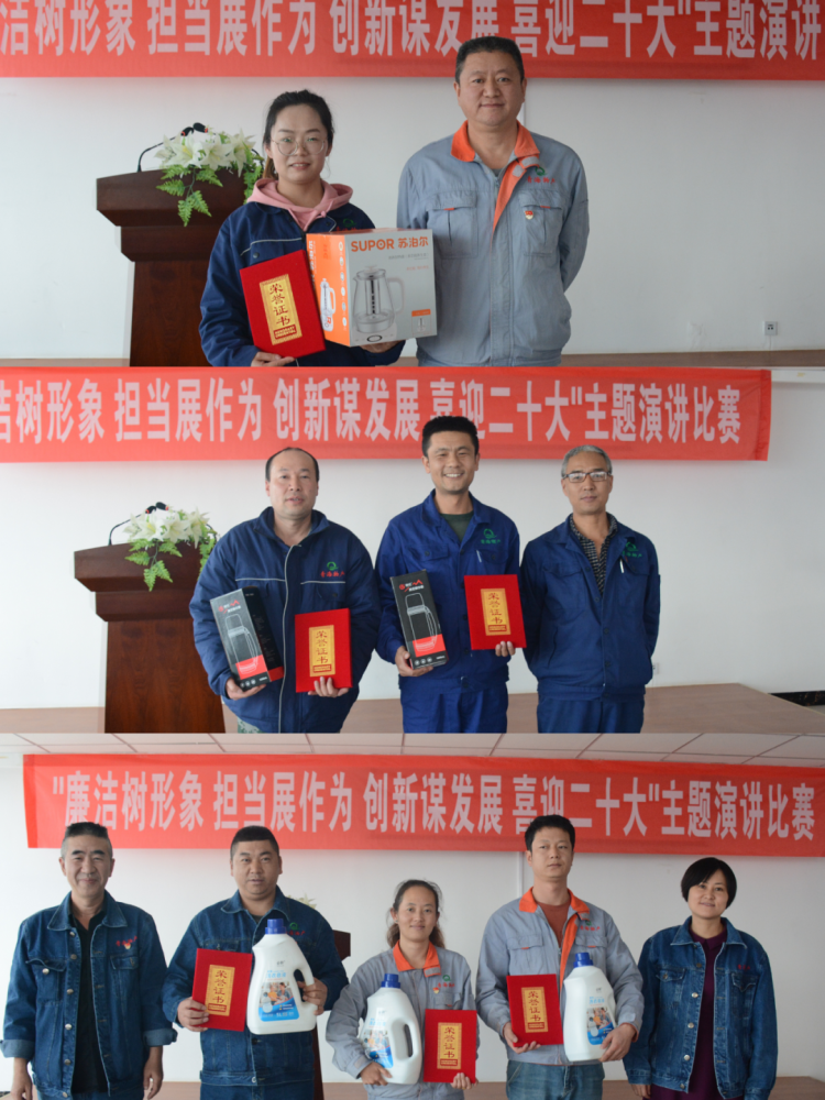 演講比賽中,19位參賽選手緊緊圍繞“廉潔樹(shù)形象 擔(dān)當(dāng)展作為 創(chuàng)新謀發(fā)展 喜迎二十大”主題,以身邊人說(shuō)身邊事,深情講述著公司各級(jí)干部職工在黨的建設(shè)、廉潔從業(yè)、疫情防控、企業(yè)傳統(tǒng)、文化傳承等工作中涌現(xiàn)出的先進(jìn)事跡、生動(dòng)故事,充分展現(xiàn)了“工投人”忠誠(chéng)為黨、敬業(yè)奉獻(xiàn)的家國(guó)情懷和責(zé)任擔(dān)當(dāng)。七位評(píng)委結(jié)合評(píng)分標(biāo)準(zhǔn)和具體要求,為每名參賽選手現(xiàn)場(chǎng)打分。經(jīng)過(guò)緊張激烈的角逐,比賽共評(píng)選出一等獎(jiǎng)1名、二等獎(jiǎng)2名、三等獎(jiǎng)3名。