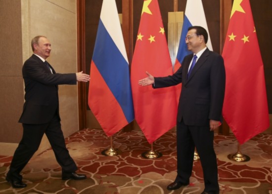 李克強(qiáng)總理會(huì)見(jiàn)俄羅斯總統(tǒng)普京時(shí)說(shuō):"中俄兩國(guó)是戰(zhàn)略伙伴,互為最大鄰國(guó)。共同維護(hù)二戰(zhàn)勝利成果,反對(duì)歪曲篡改二戰(zhàn)歷史,這是我們的共識(shí),也是對(duì)世界正義的伸張。"