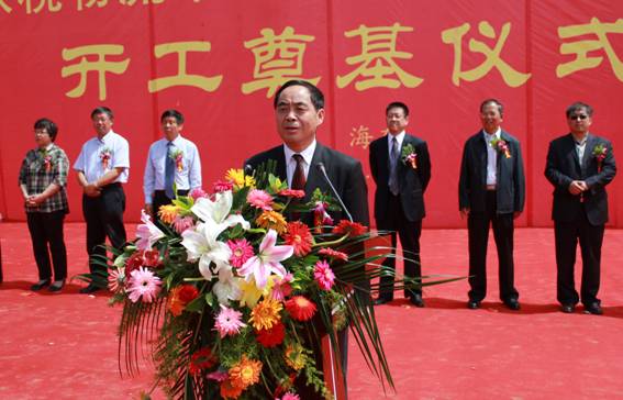 此次開工奠基儀式由青海省經(jīng)濟(jì)委員會(huì)主任、青海省政府國(guó)資委副主任吳海昆主持。省委常委、省政府副省長(zhǎng)駱玉林、海東地委書記于叢樂(lè)、海東行署專員金長(zhǎng)華、海東工業(yè)園區(qū)管委會(huì)常務(wù)副主任董璞、省國(guó)資委副主任孫立明、海東行署常務(wù)副專員初軍威、省商務(wù)廳副廳長(zhǎng)汪京萍、省科技廳副廳長(zhǎng)卞曙光、省國(guó)土資源廳副廳長(zhǎng)朱小川、省環(huán)保廳副廳長(zhǎng)張藍(lán)青、西寧海關(guān)副關(guān)長(zhǎng)馬馳、省安監(jiān)局副局長(zhǎng)范士偉、省運(yùn)管局黨委書記余永春、建行青海省分行副行長(zhǎng)王正錄、工行青海省分行副行長(zhǎng)張振民、海東工業(yè)園區(qū)管委會(huì)專職副主任王占恩、海東工業(yè)園區(qū)黨工委專職副書記王朵云、青藏鐵路公司副總經(jīng)理陳立民、省物產(chǎn)集團(tuán)總經(jīng)理王玉輝、省物產(chǎn)集團(tuán)黨委書記白家林、北京城建七建設(shè)工程有限公司副總經(jīng)理姜曉剛、省國(guó)資委監(jiān)事會(huì)主席張守杰、互助縣縣委書記師存武以及省有關(guān)部門的負(fù)責(zé)同志參加了本次奠基儀式。