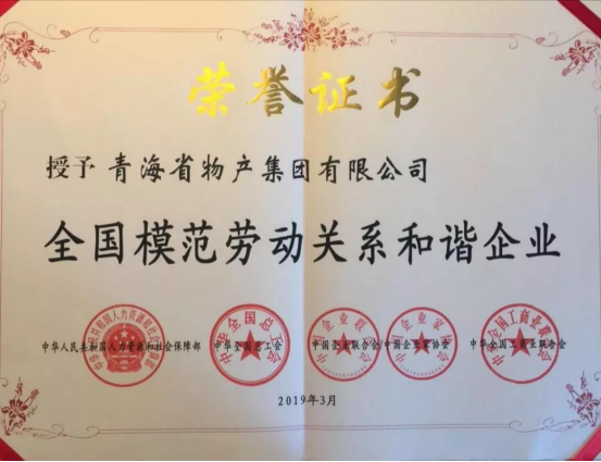 由青海省人力資源和社會(huì)保障廳、青海省總工會(huì)、青海省企業(yè)聯(lián)合會(huì)/企業(yè)家協(xié)會(huì)、青海省工商業(yè)聯(lián)合會(huì)共同推薦申報(bào),青海省物產(chǎn)集團(tuán)有限公司、青?;ブ囡乒煞萦邢薰?、正平路橋建設(shè)股份有限公司榮獲全國(guó)模范勞動(dòng)關(guān)系和諧企業(yè)光榮稱號(hào),西寧經(jīng)濟(jì)技術(shù)開(kāi)發(fā)區(qū)東川工業(yè)園區(qū)榮獲全國(guó)模范勞動(dòng)關(guān)系和諧工業(yè)園區(qū)光榮稱號(hào),受到了國(guó)家人力資源和社會(huì)保障部、中華全國(guó)總工會(huì)、中國(guó)企聯(lián)、全國(guó)工商聯(lián)的隆重表彰。